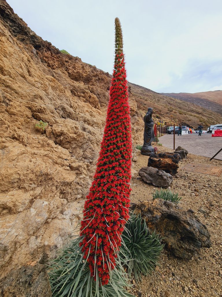 En montant au niveau du volcan , nous avons pu observer la plante endémique de l’île : La vipérine de Tenerife. Quelle surprise arrivée au niveau de la station du téléphérique d’en découvrir une géante !!