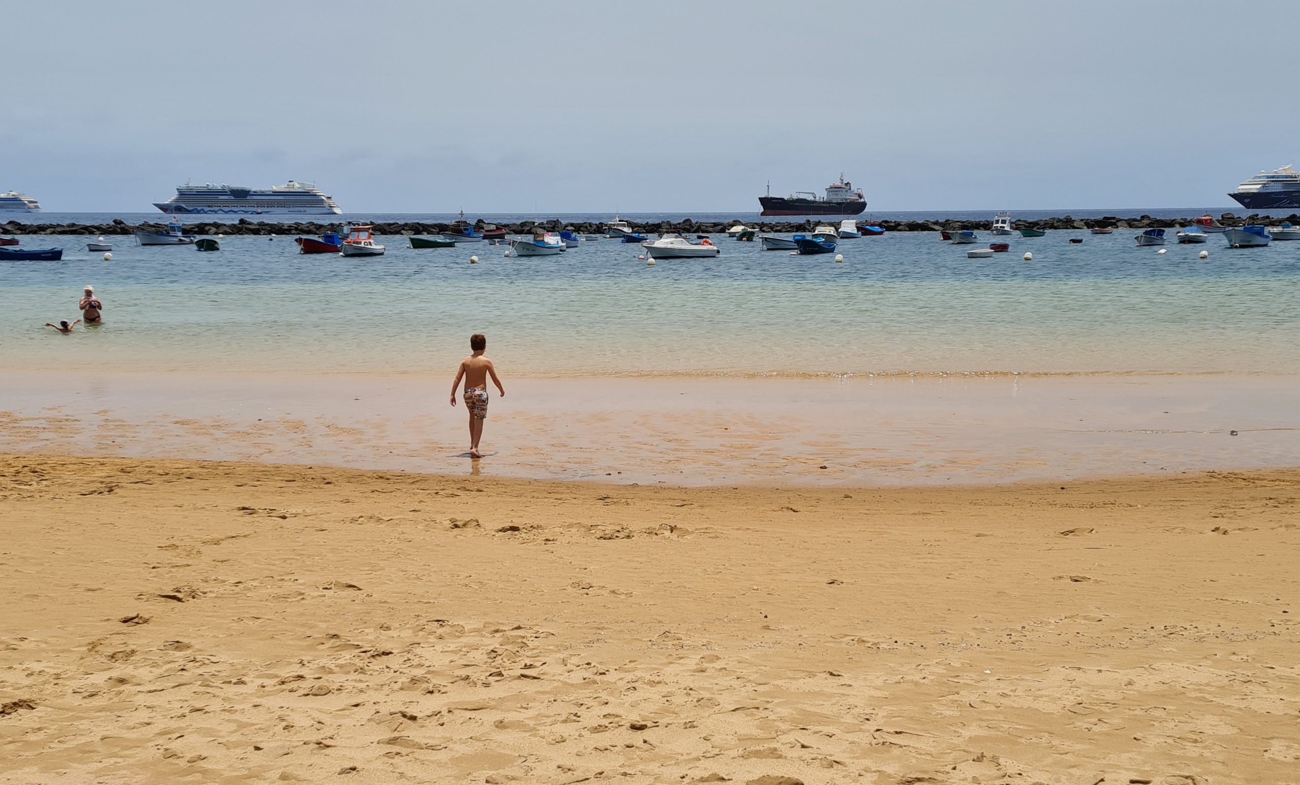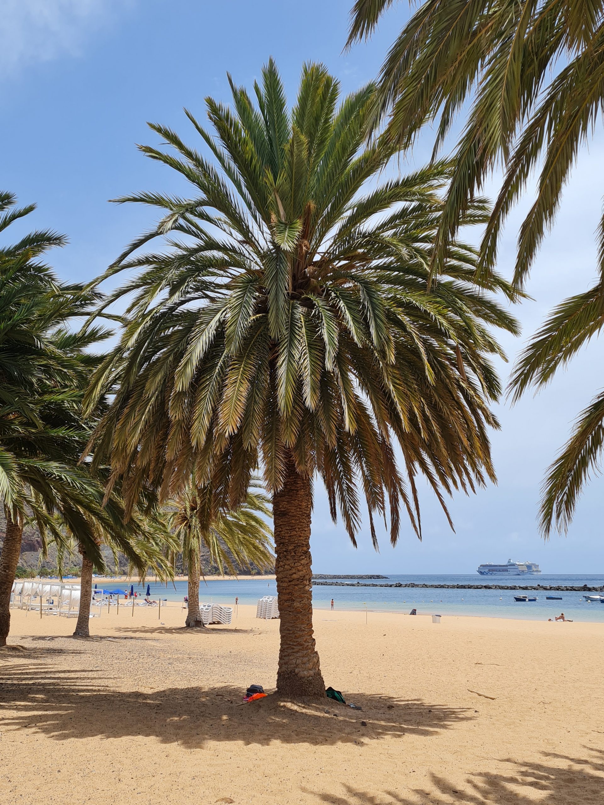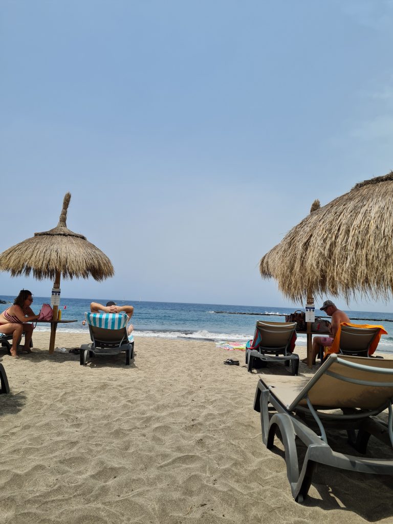 Après un rapide coup d’oeil à l’audinotorium, les enfants n’étant pas trop intéressés par ça, nous sommes allés faire du shopping et puisque nous avions le temps et que nous n’étions pas loin, nous avons décidé de passer l’après-midi dans une des plus belles plages de Tenerife : Las Teresistas. Il y a aussi un grand parking gratuit qui permet d’accéder à la plage. De plus, il y a de nombreuses locations de parasols et transat , 12 euros pour 2 personnes, peut importe la durée et il y a aussi des paillotes , à prix raisonnable, si on veut manger sur place. De plus, la plage est bien amménagée puisqu’il y a des cabines pour pouvoir se changer et des des toilettes publiques.