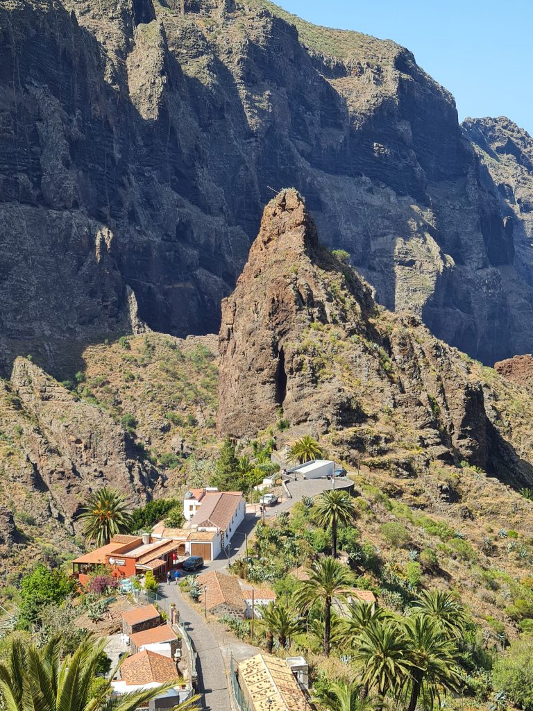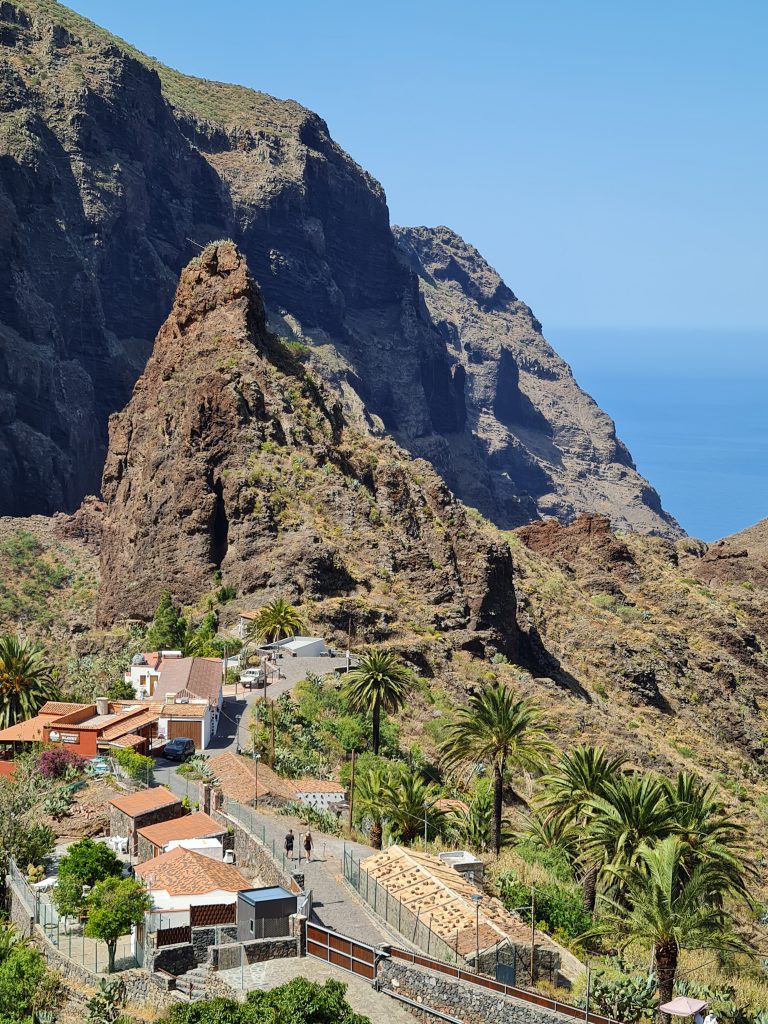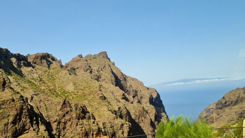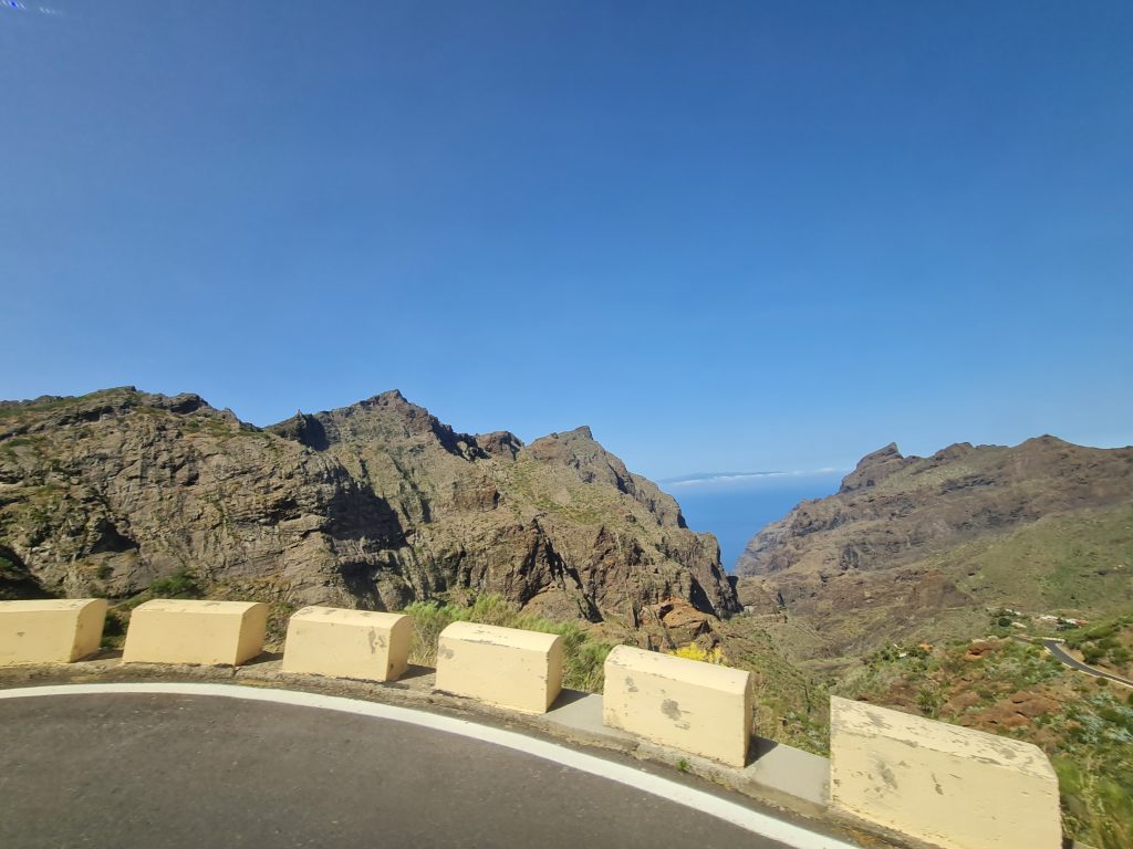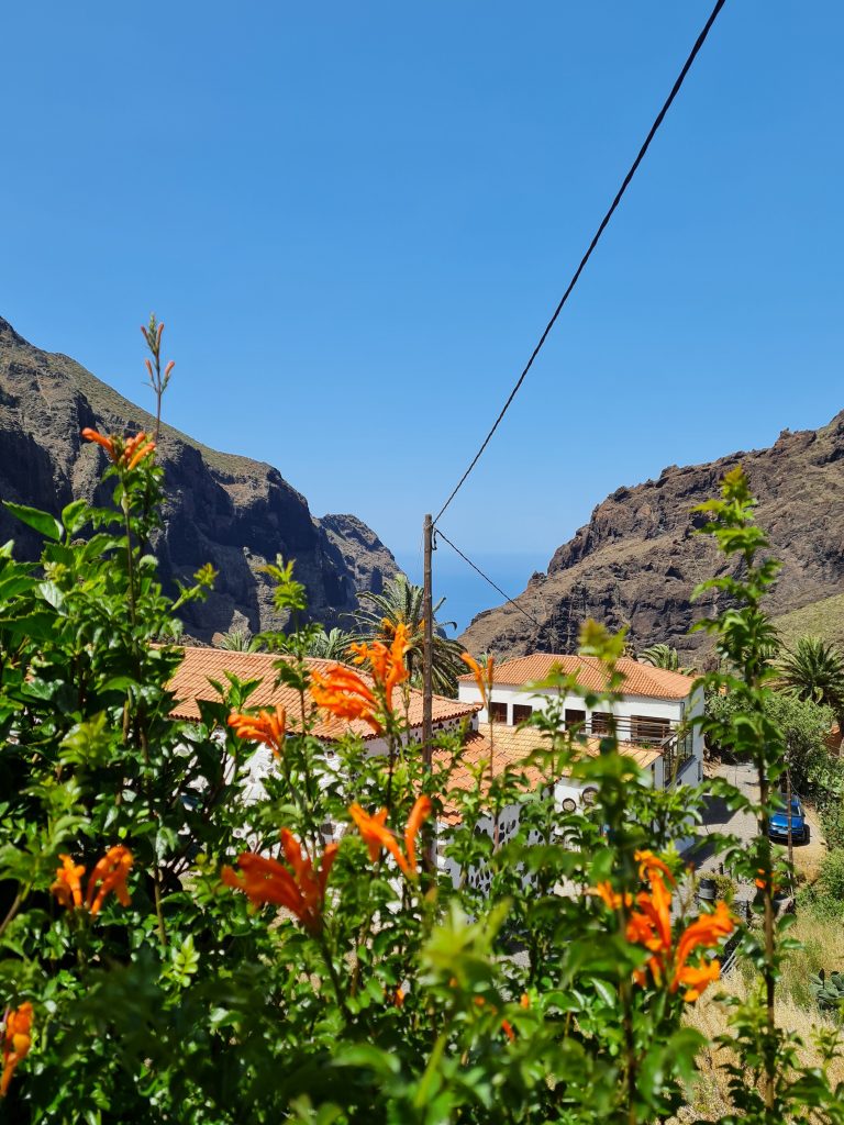 Puisqu’il est conseillé de visiter ce petit hameau qui se situe au mileu de parc de Teno, c’est ce que nous avons décidé de faire. Il existe plusieurs façons de se rendre à Masca.(voir ici) Attention tout de même car il est très difficile de s’y garer. De plus , pour y parvenir, la route est sinueuse et étroite par endroit. J’ai donc opté pour prendre le bus depuis Santiago del Teide (2€ l’aller/retour par personne), qui est un joli petit village.
