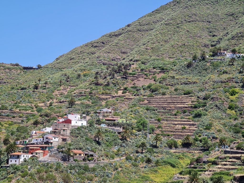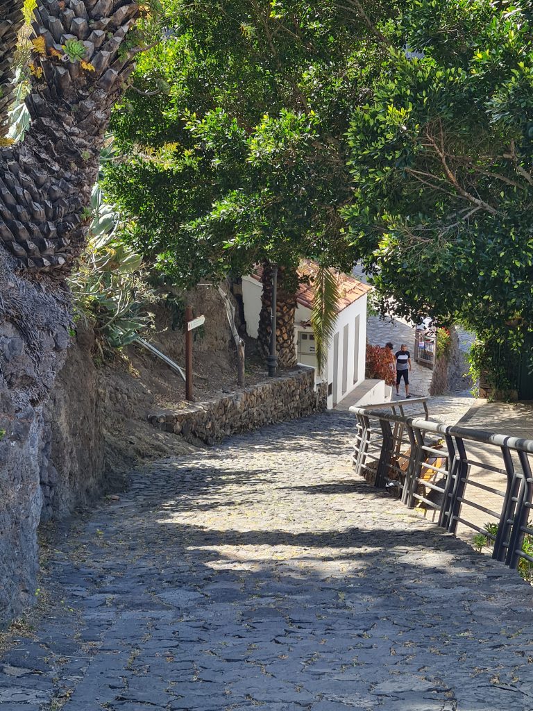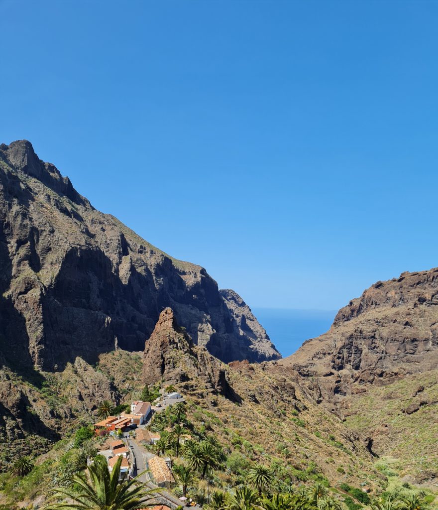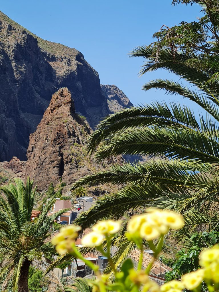 Puisqu’il est conseillé de visiter ce petit hameau qui se situe au mileu de parc de Teno, c’est ce que nous avons décidé de faire. Il existe plusieurs façons de se rendre à Masca.(voir ici) Attention tout de même car il est très difficile de s’y garer. De plus , pour y parvenir, la route est sinueuse et étroite par endroit. J’ai donc opté pour prendre le bus depuis Santiago del Teide (2€ l’aller/retour par personne), qui est un joli petit village.