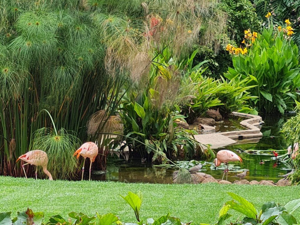 d’une exceptionelle beauté qui s’étend sur quasimment 14 ha. De nombreuses espèces animales coexistent et sont présentes au sein de ce parc : des oiseaux, des mammifères, des poissons et des reptiles. Certains animaux sont en semi-liberté et il existe aussi une flore importante. Le parc contient la plus grande réserve de perroquets au monde. De plus, le prix du billet comprend aussi l’accès aux exhibitions et aux spectacles. Au niveau des spectacles il y un spectacle de perroquets, de dauphins, d’orque et d’otaries. Les horaires sont faits de manière à ce qu’on puisse voir tous les spectacles.
