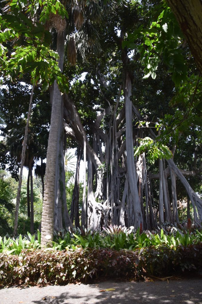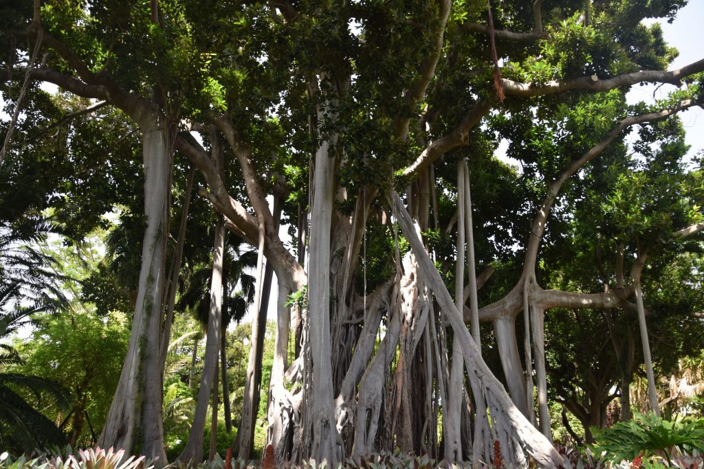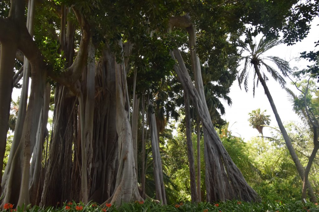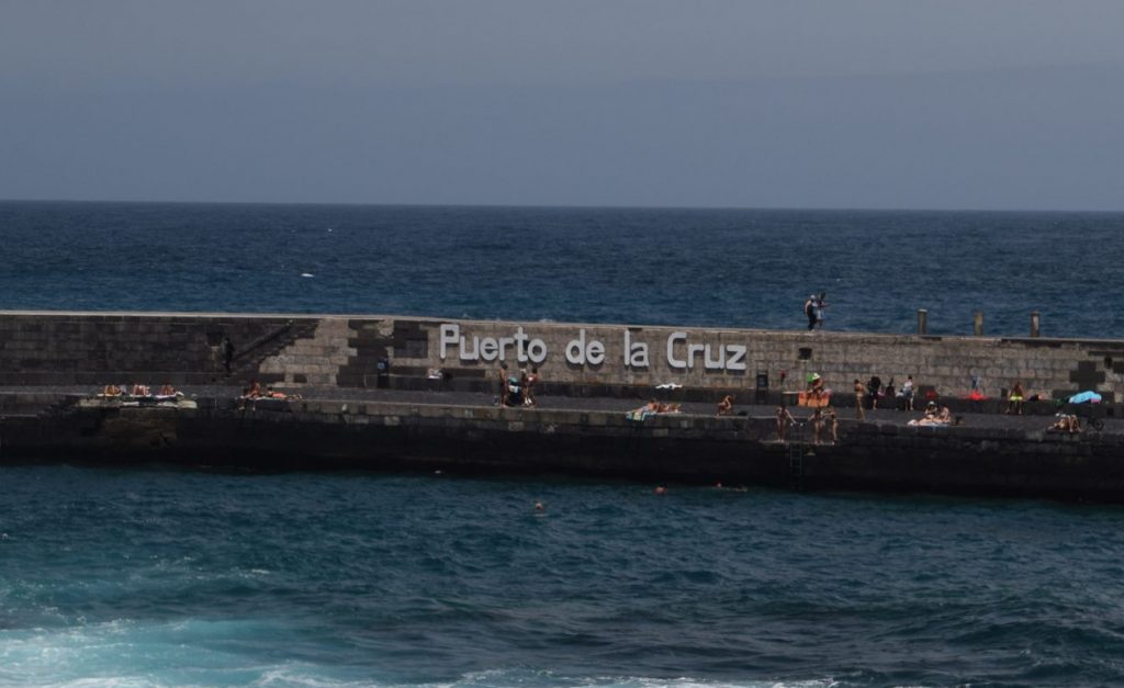 Dernier check de google map on n’en a pour 2h de route (nous un peu plus car on s’arrête au niveau des belvédères pour les photos, liste ici), on est assuré d’avoir un parking gratuit pas loin de la zone touristique. Cett ville est située sur la côte nord de l’île. Arrivés à Puerto Cruz nous découvrons une ville portuaire et le temps est légèrement différent du Sud où nous logeons : le temps est couvert, il y du vent et il fait plus frais.