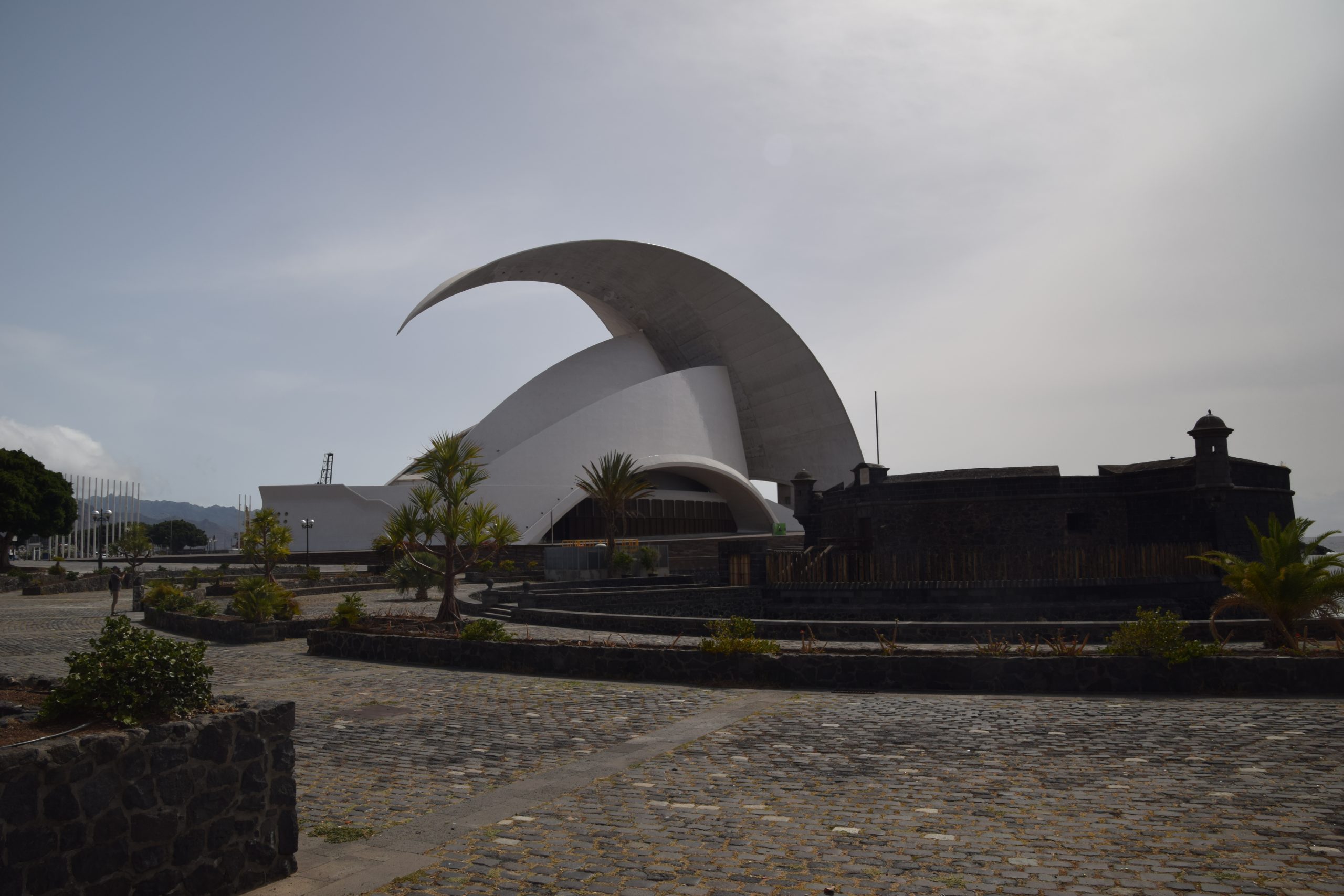 Pour ce troisième jour, nous décidons de visiter la capitale de Tenerife, située au nord-est de l’île. Après nous être garés dans un grand parking gratuite, nous voilà en route vers l’auditorium. En y allant, nous sommes passés devant le château de San Juan Bautista qui est surnommé le « Château noir » et il fut construit durant la première moitié du XVIIe siècle. C’est en r&laité un fort circulaire côtier.